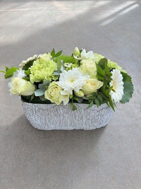 **Het bloemstuk dat u bestelt zal zo gelijkend als mogelijk overeenkomen met de foto. Uiteraard kan dit een beetje variëren naargelang het veilingaanbod.