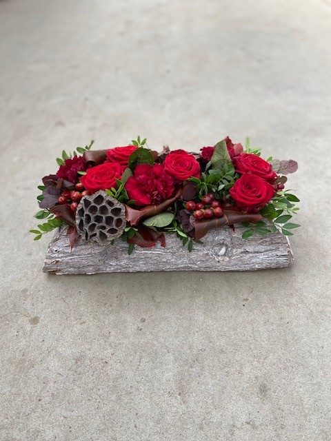 – Verse bloemen in een handgemaakt bloemstuk
